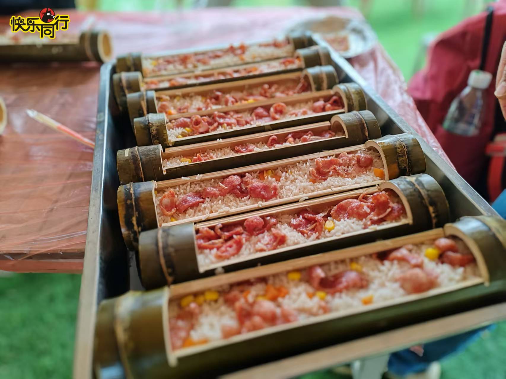竹筒饭以竹筒作为烹饪器具,将米饭、肉类、蔬菜等食材一起烹制而成。