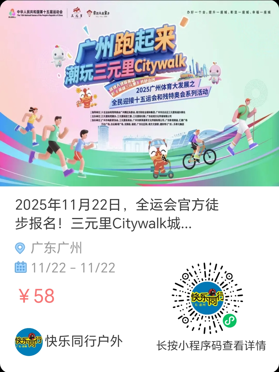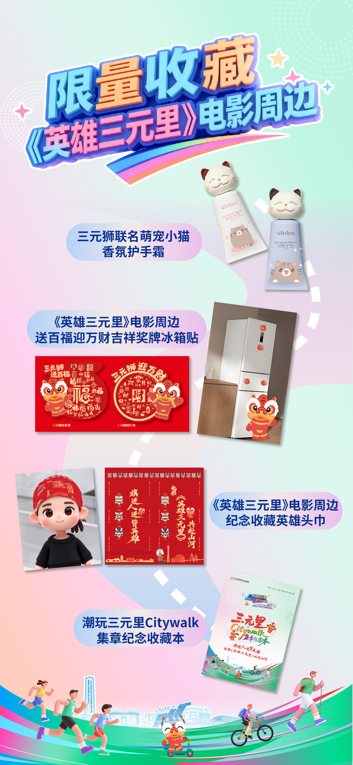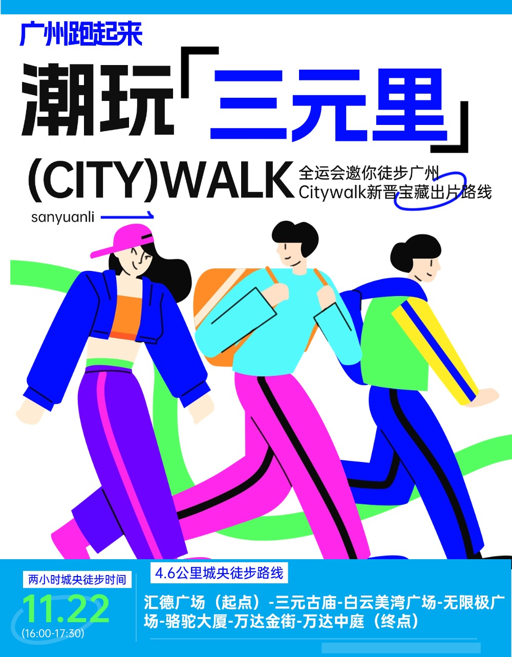 骆驼户外总部轻奢户外+捷安特潮流骑行+潮玩音乐会+咖啡搭子市集+美湾广场时尚美妆+国潮中医药+《英雄三元里》电影NPC与电影周边+全运会帆布包...2小时4.6公里城央徒步一站式漫步奢享!