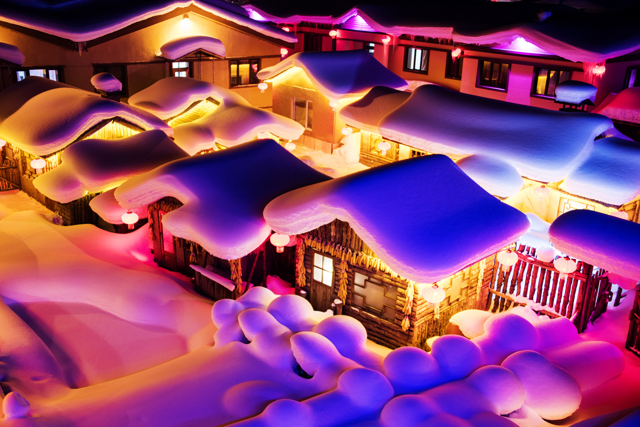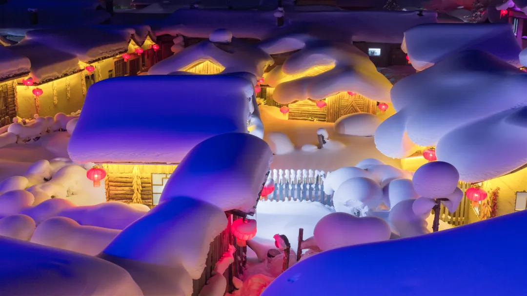在大红灯笼的暖光下,住进漂亮的“雪蘑菇”