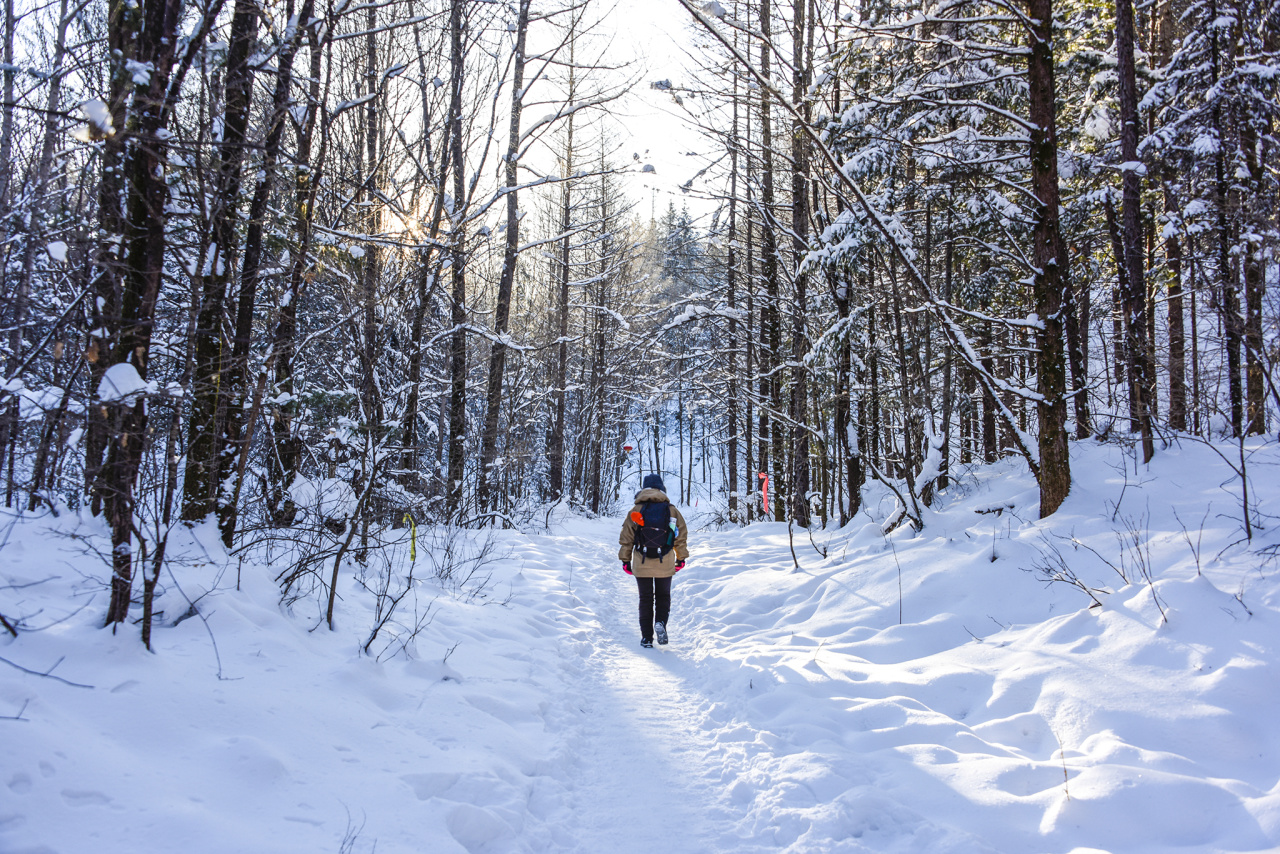 ● 脚踏轻巧保暖登山鞋/雪地靴/专业冲锋鞋+羊毛袜,也可以携带冰爪防滑;