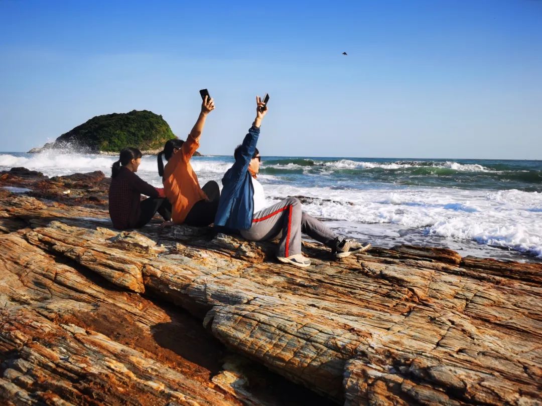 ◆13:00 餐后前往黑排角起点,到达后开始徒步黑排角精华段,渡头村至杨屋外滩,会经过彩石滩,观赏长长的黑沙滩,黑排上角色彩斑斓的红色页岩,独特的礁石海岸奇观,徒步里程5公里;
