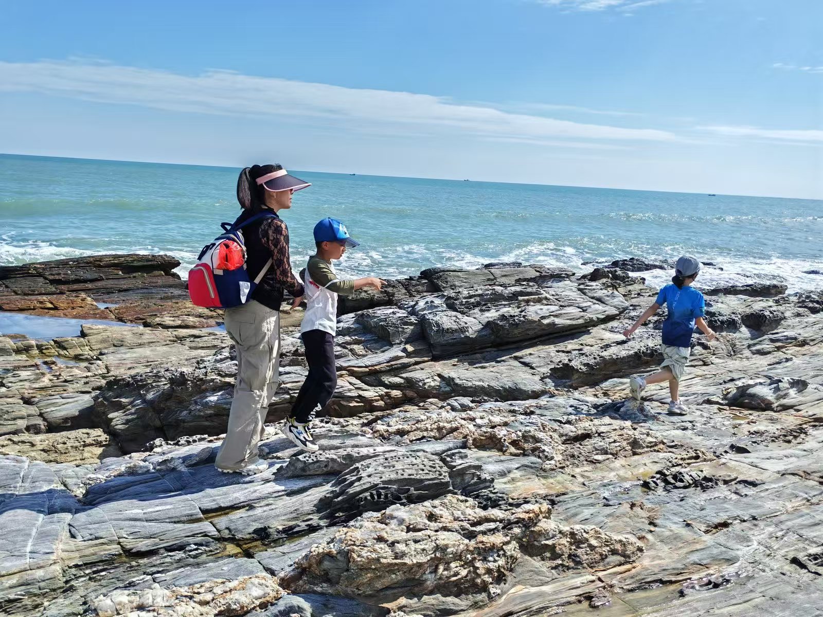 辽阔的大海,蔚蓝的天空,奇特的礁石,这都是大自然的鬼斧神工。