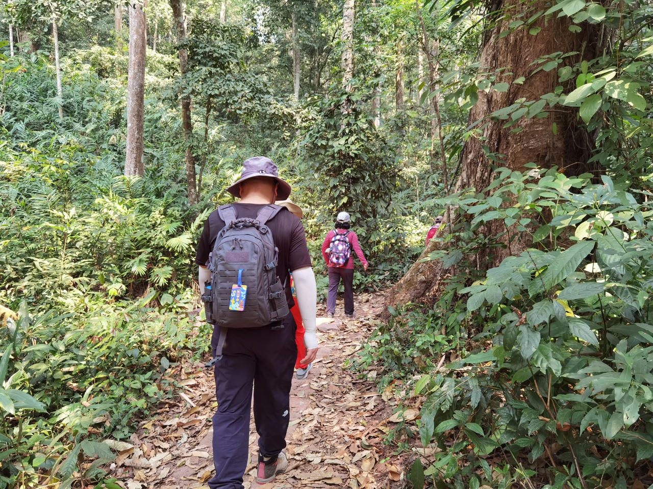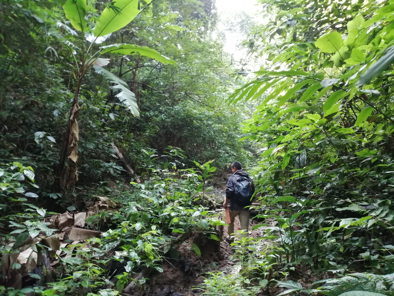 视线被不同层次的绿色铺满,湿润的空气从裸露在外的手臂、脚踝处入侵,不时的鸟鸣让雨林显得更加肃穆,脚下的动作不由得放缓到极限。