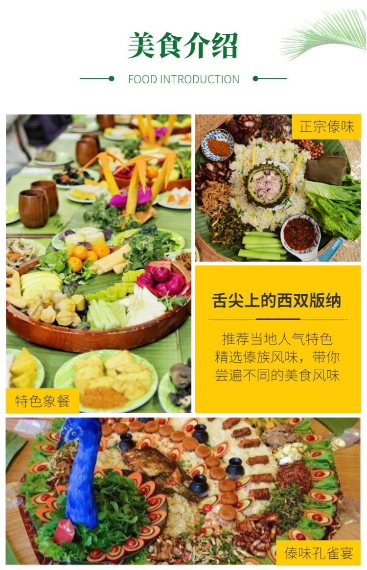 晚宴特别安排傣族风味“孔雀宴”。孔雀宴曾被评为“中国菜”之云南十大主题名宴。