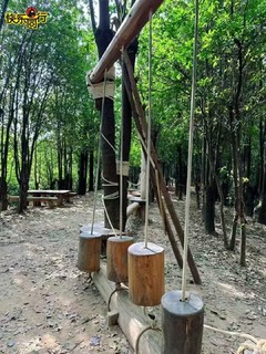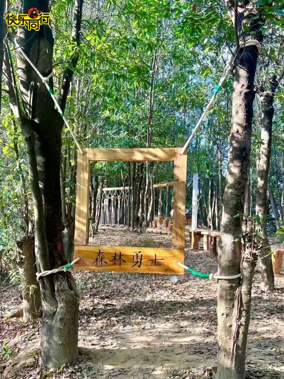 这条路线最贴心之处,就是每隔一段距离就有让小朋友眼前一亮的趣味设计——沿途有许多植物科普介绍、木头做的小蘑菇、蜘蛛网造型的攀爬网、简易却好玩的秋千、“森林勇士”木头大相框……每个装置都成了孩子们的快乐源泉。