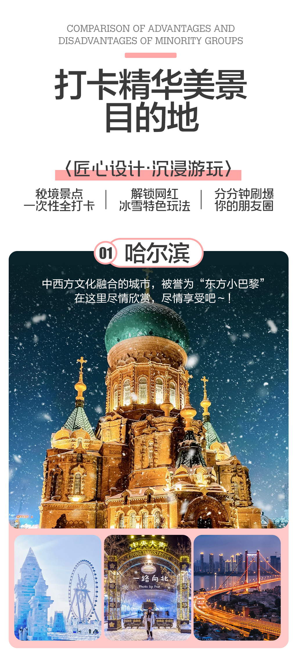 优惠团期:11月12日-12月9日、2月25日-3月4日之间任意一天哈尔滨集合