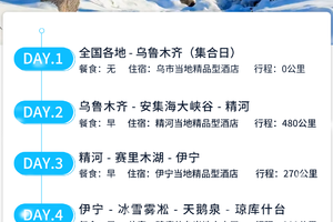 需要返回乌鲁木齐的可以免费跟车返回,全程高速+国道,中途不停留任何景区,预计第八天晚上抵达乌鲁木齐,途中住宿及餐食需要自理。