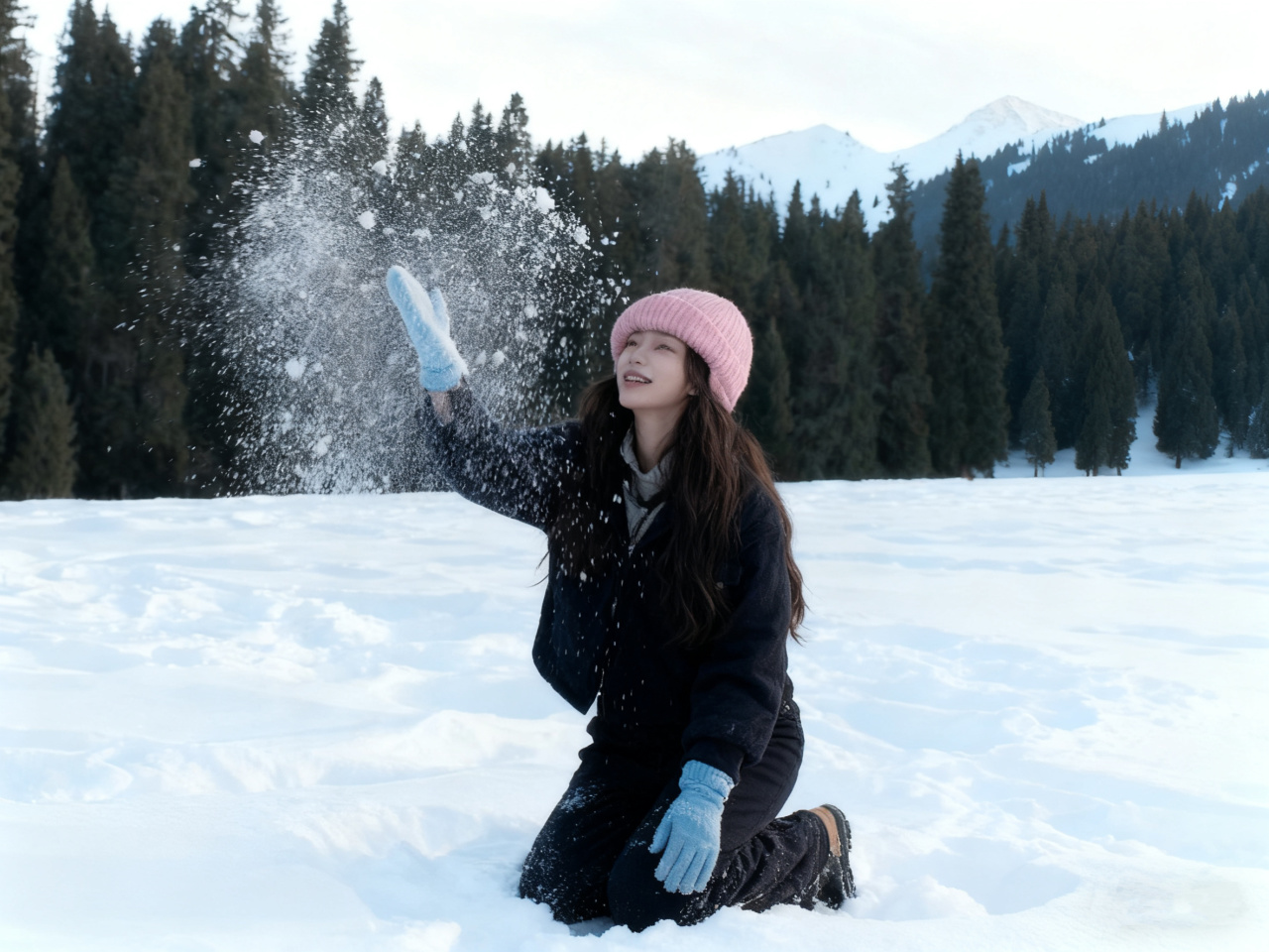 今日早餐后前往库尔德宁,冬季的库尔德宁,皑皑白雪将这里妆点成一个超凡脱俗的琉璃世界,每一寸景致都透着空灵与静谧,宛如遗落人间的仙境。举目四望,连绵起伏的山峦像是被大自然披上了一层洁白无瑕的绒毯,天山雪岭云杉也换上了银装。脚下,厚软的积雪发出“咯吱咯吱”的轻响,像是在轻声诉说着冬日的秘密。每一步踩下去,都能感受到雪的细腻与温柔。四周的草地早已被雪深深掩埋,平日里星星点点的野花踪迹全无,唯有白茫茫一片,纯净得让人不忍心去破坏这份美好。不远处,蜿蜒的溪流也被冰雪封印,冰面光滑如镜,倒映着岸边银装素裹的世界,像是一面通往童话国度的魔镜。偶尔有几处未完全冰封的地方,溪水在冰层下潺潺流动,发出微弱却又执着的声响,给这寂静的雪境添了几分灵动。抬眼看向远方,云雾与白雪交织在一起,模糊了山峦与天空的边界,一切都变得如梦似幻。“