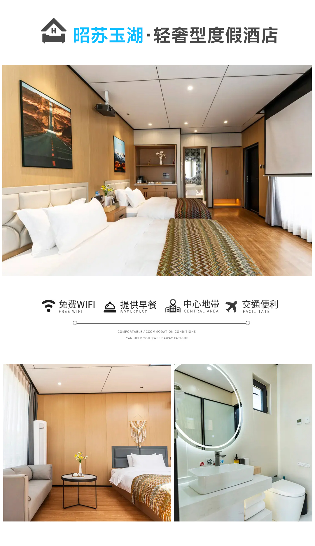 住宿:赛湖景区门口轻奢酒店(标间,独卫)
