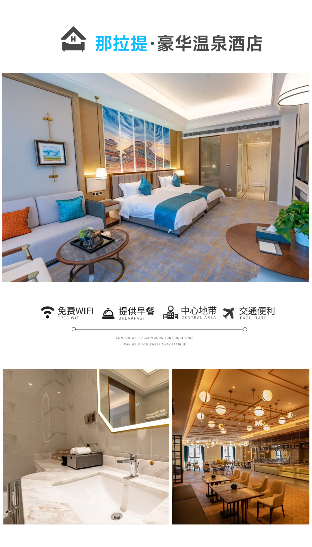 住宿:那拉提当地豪华温泉酒店(标间,独卫)