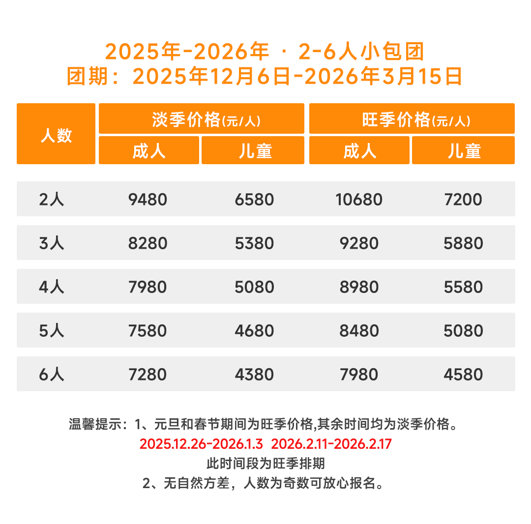 【排期价格】此价格为私家团价格,非散拼,可根据人数日期随时出发!