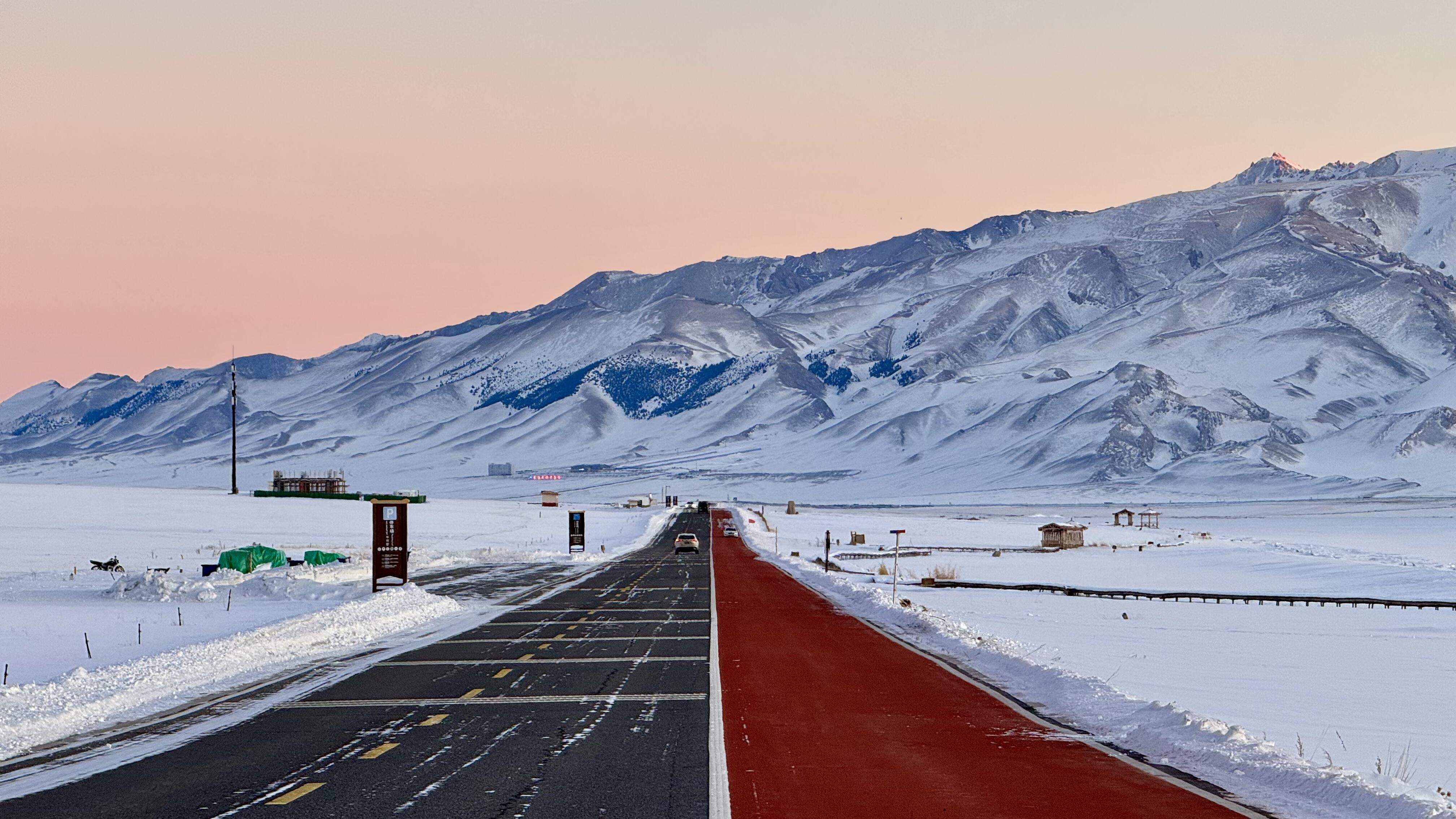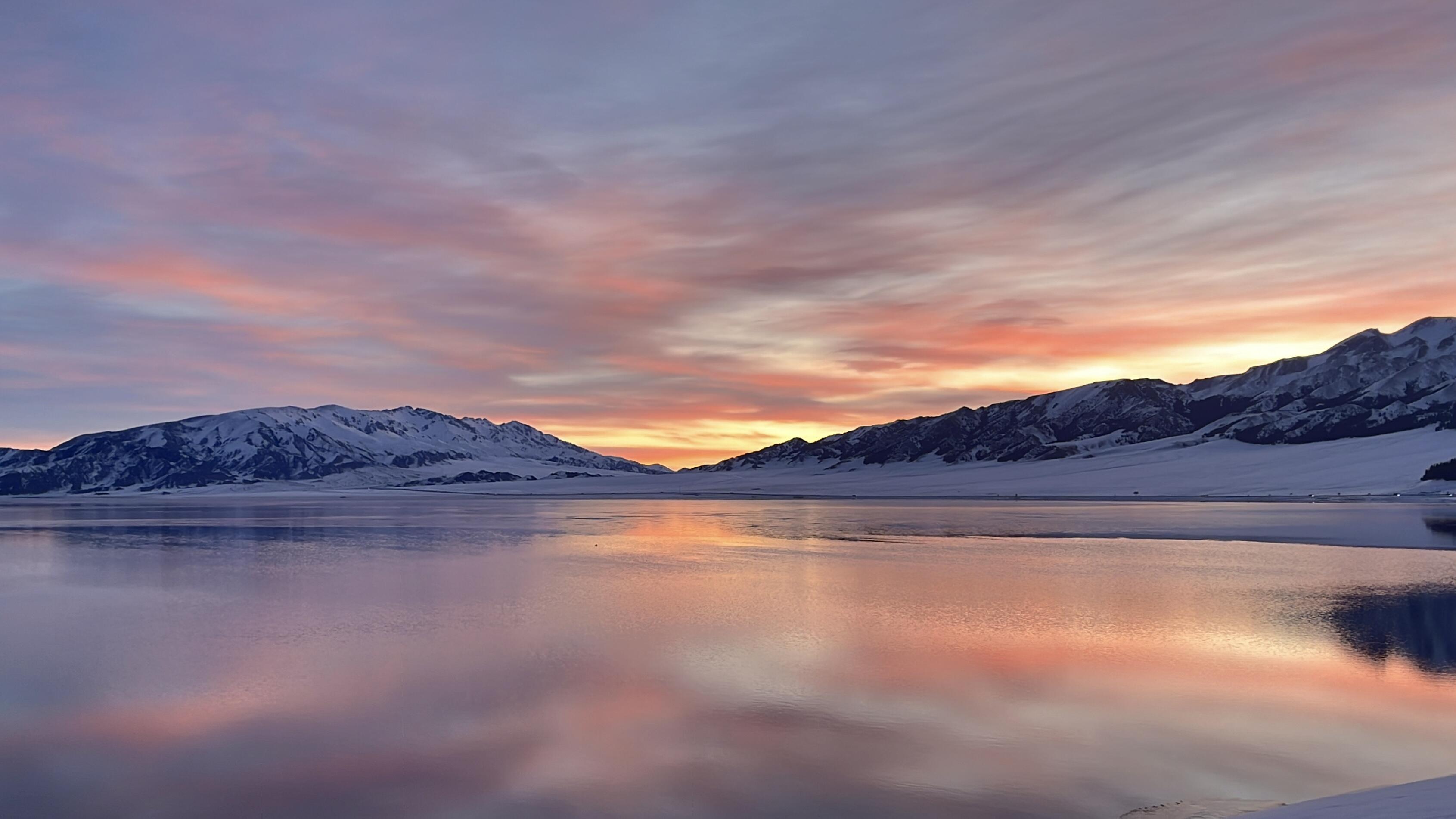 早上起床后,可以前往赛里木湖欣赏日出,赛湖静谧的湖面倒映着蓝天白云和雪山,犹如冬日的“天空之镜”。环湖四周都能看到这一绝美风景。清晨,日出倒映在湖面上,也像是开启了“镜像”特效,比平时多了一份绝美!
