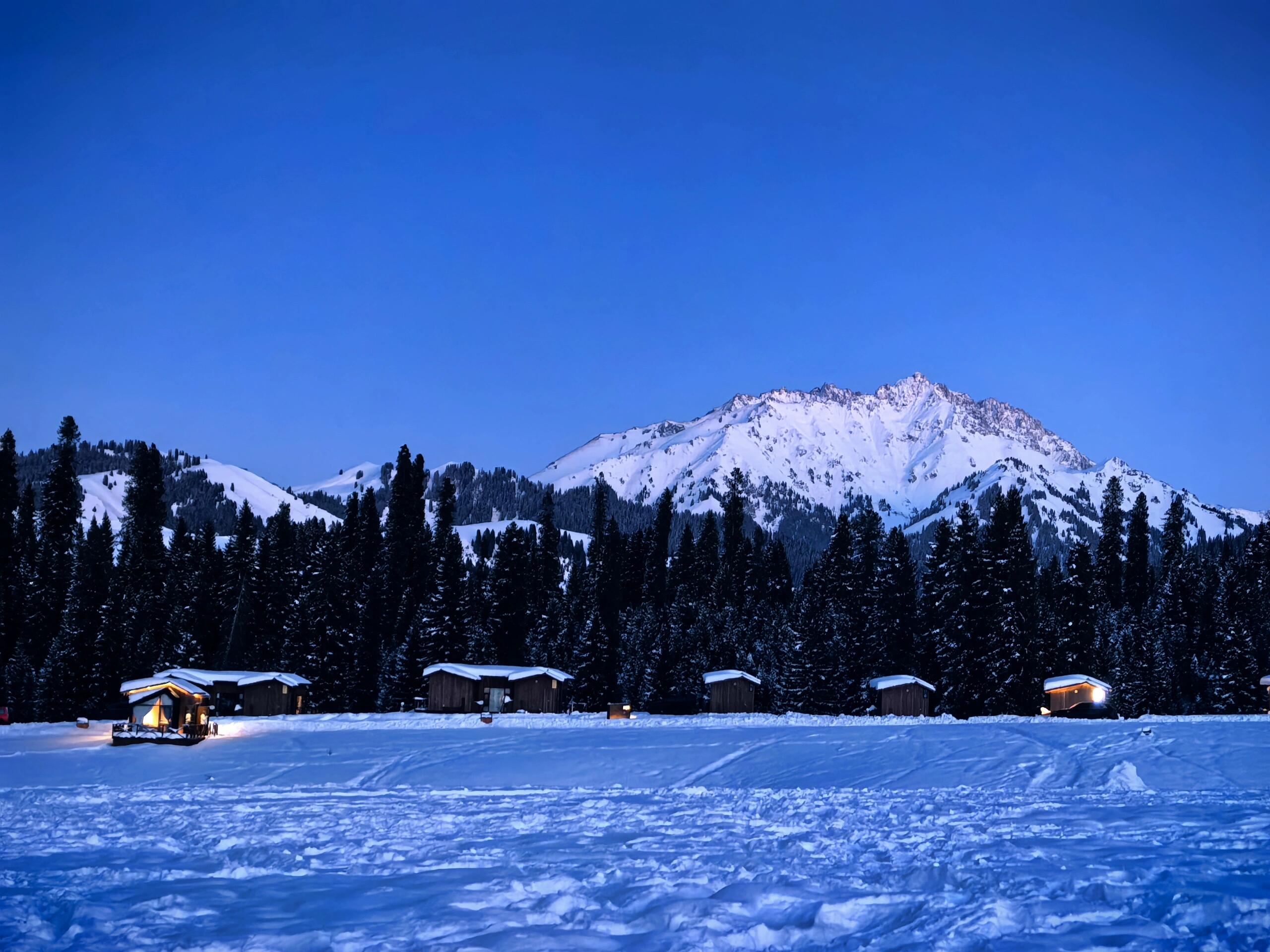 下午时分前往4S滑雪场哈茵赛度假区,想要体验滑雪,这里的滑道平和,适合新手体验。不想滑雪的也可以在戏雪区体验雪圈,雪地摩托等。在这里我们可以尽情撒欢,等待日落时分邂逅日照金山的视觉震撼。