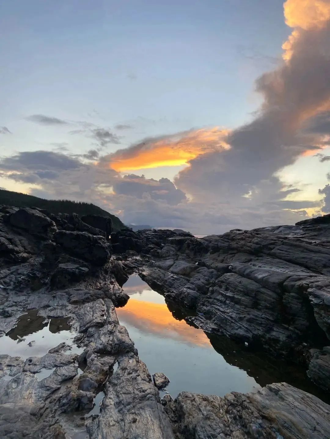 天朗气清,接近夕阳时分,礁石和浅滩在光照的折射下就能营造出一片纯净的“天空之境”!