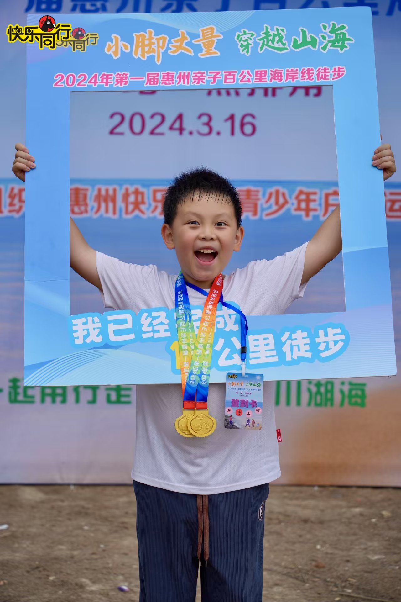 八条海岸线共同组成100公里的亲子百公里海岸线徒步线路,完成每一站均颁发相对应站点的纪念奖牌,完成八站线路的队员还会颁发“2025年第二届惠州亲子百公里海岸线徒步的总奖牌或奖杯”。