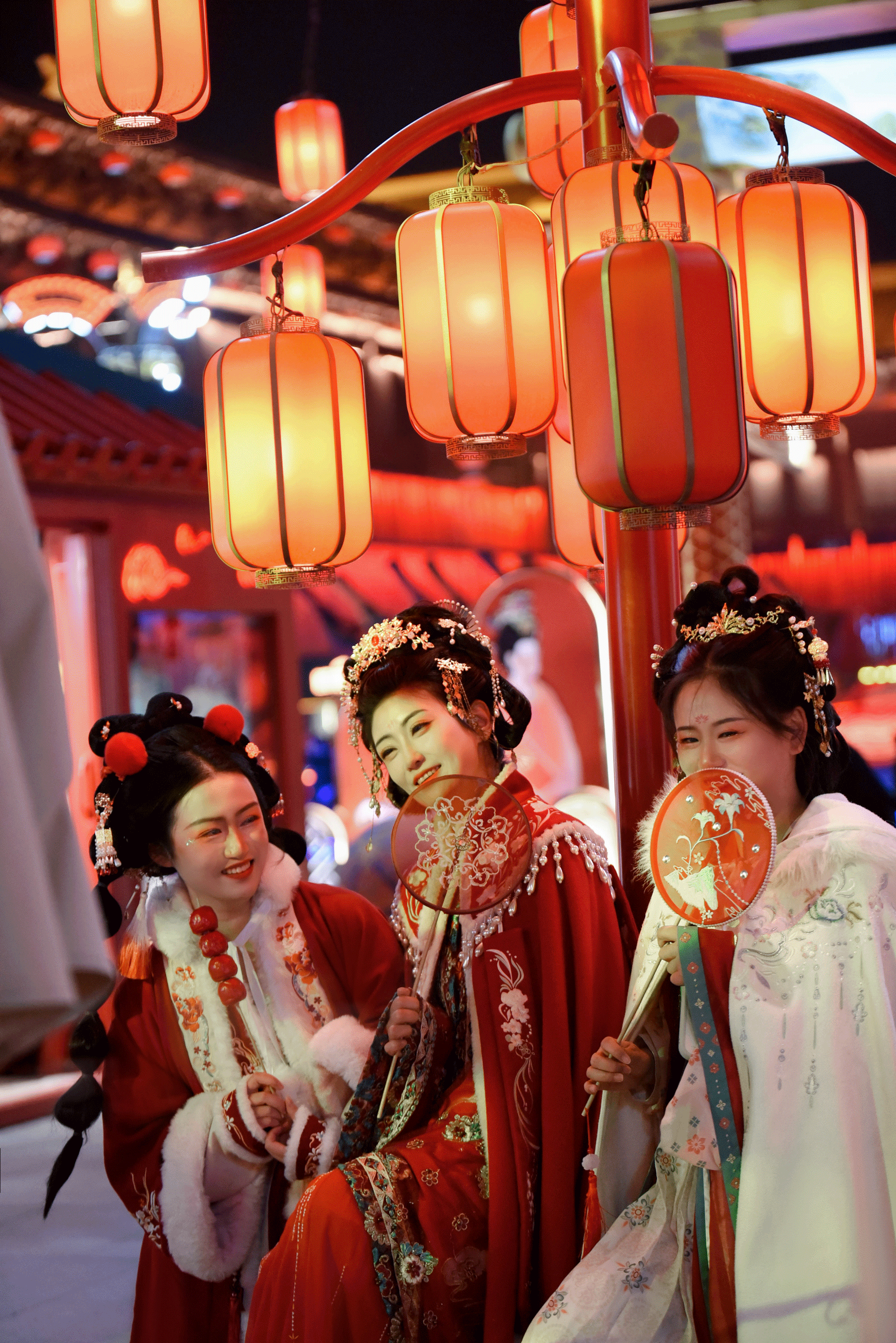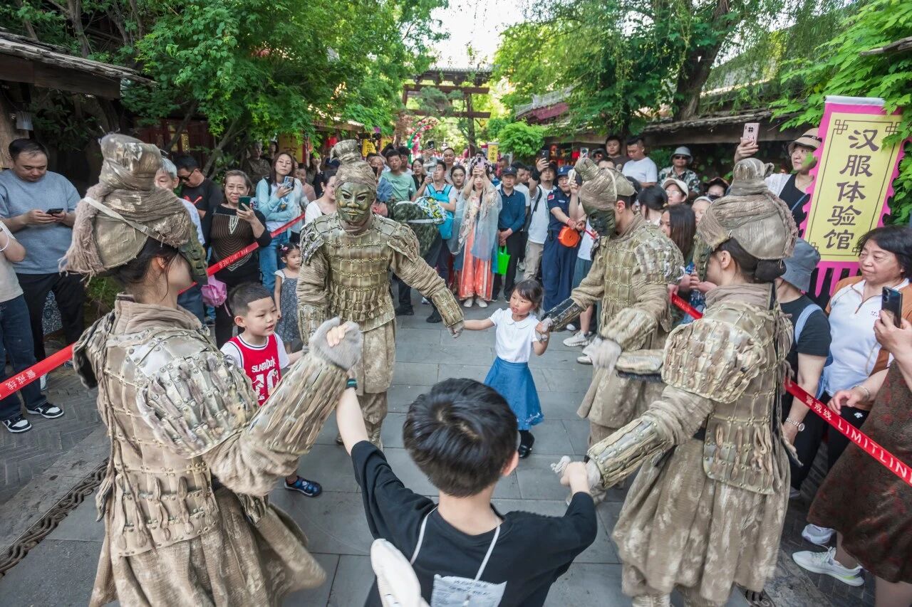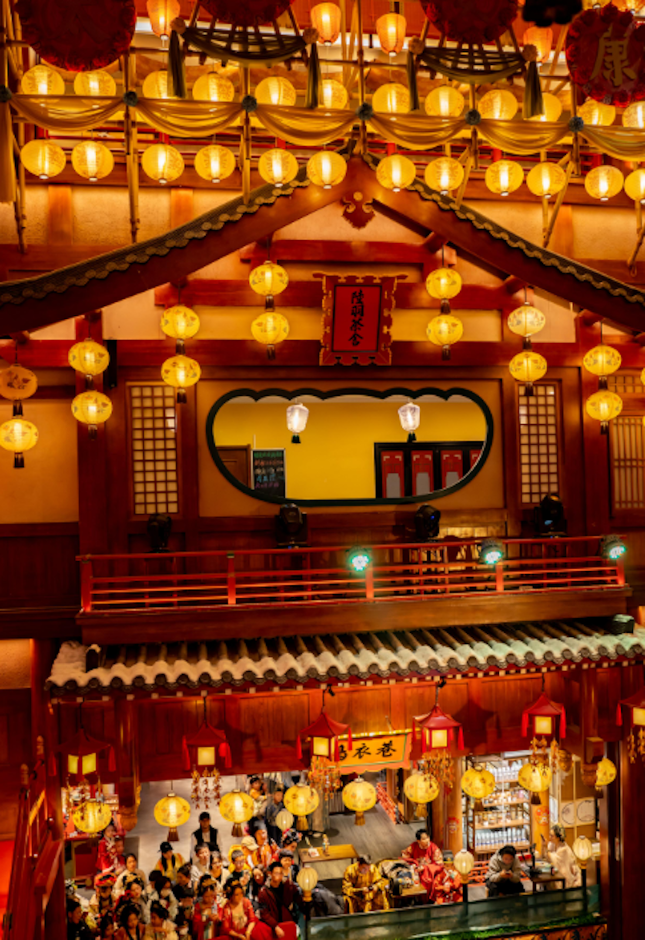 作为一座沉浸式唐风实景互动剧场,它实景还原了盛唐的市井生活,全天不间断的演出和NPC互动体验让它变成大人和孩子都爱的大型剧本杀现场,国潮又有趣。