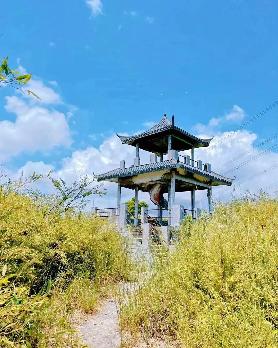 登上打鼓岭山顶的凉亭