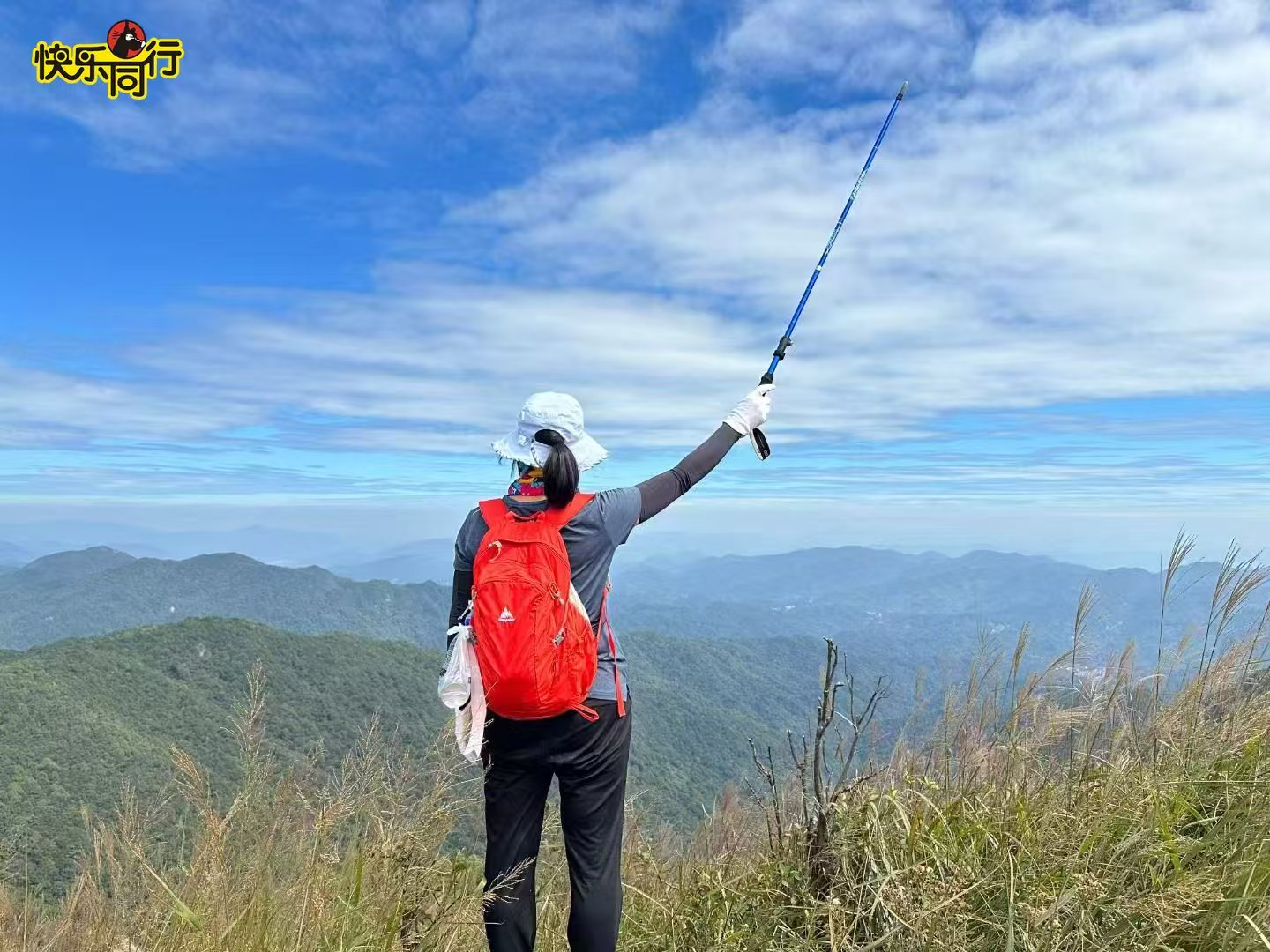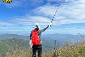 10:00到达起点,中途午餐,到达山顶后打卡拍照,合影后开始下山;