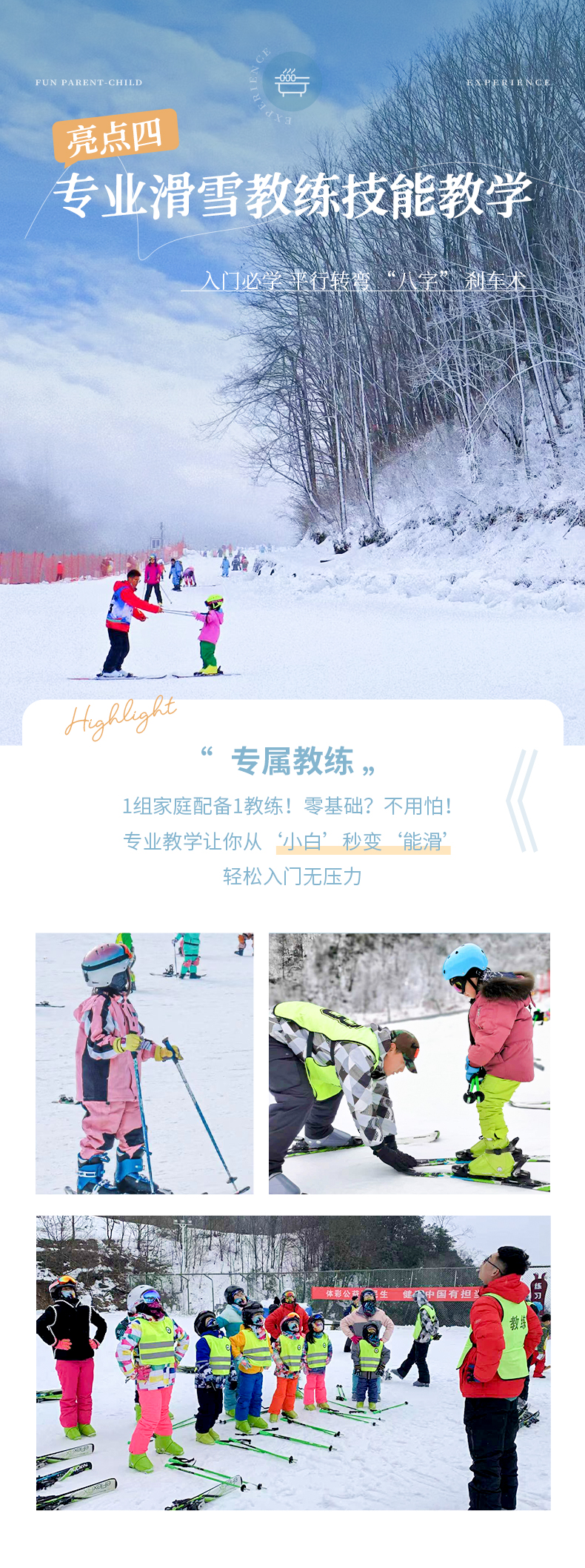 上午,抵达游客中心后换好滑雪鞋,滑雪板等正式开始滑雪;我们给每组家庭配备一位滑雪私教,服务时长两小时