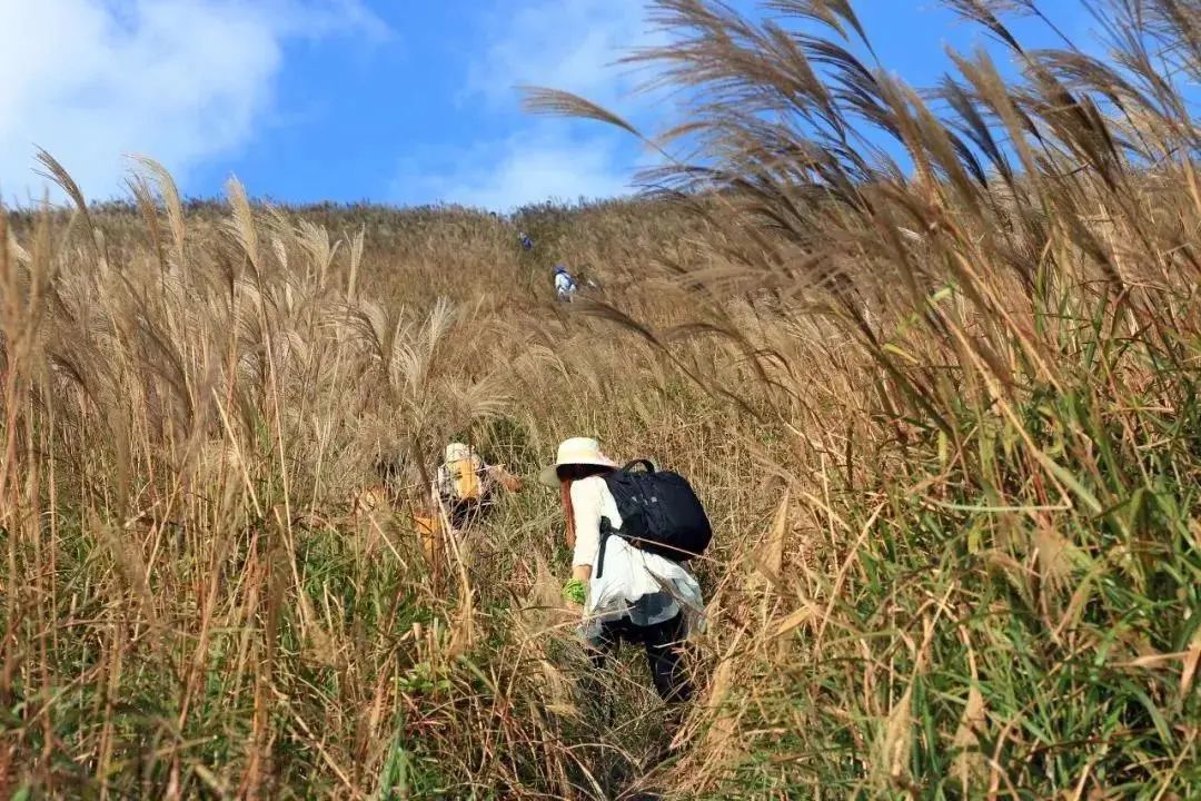 09:30 到达目的地,合影之后先做热身运动,接着开始我们登千米高峰白云嶂的征途,白云缭绕芦苇飘荡,沿途美不胜收;