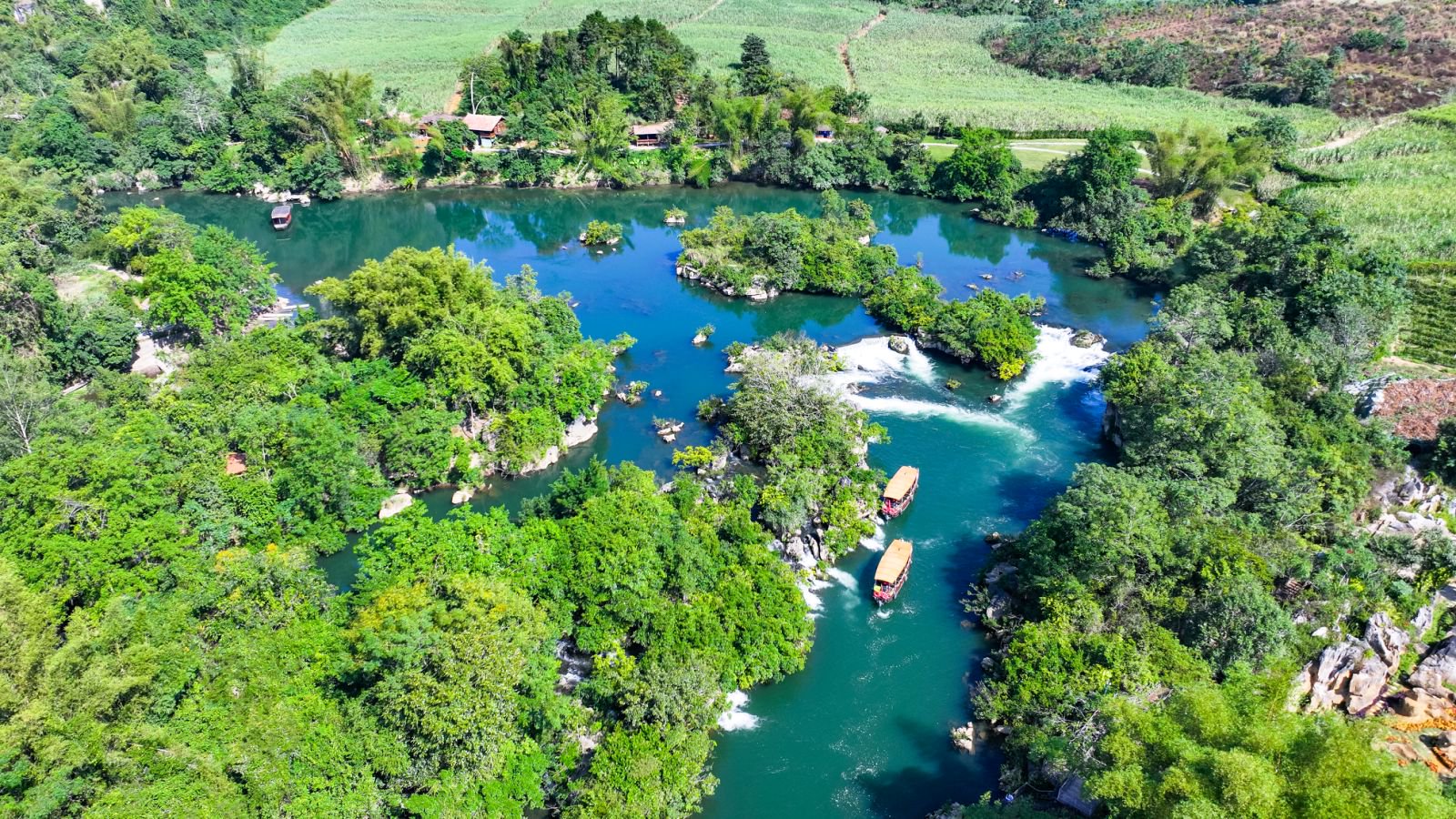 峒那屿湾景区被誉为“别样漓江”“桂水仙河”,曾被《花千骨》《蜀山战记》等多部影视剧取景
