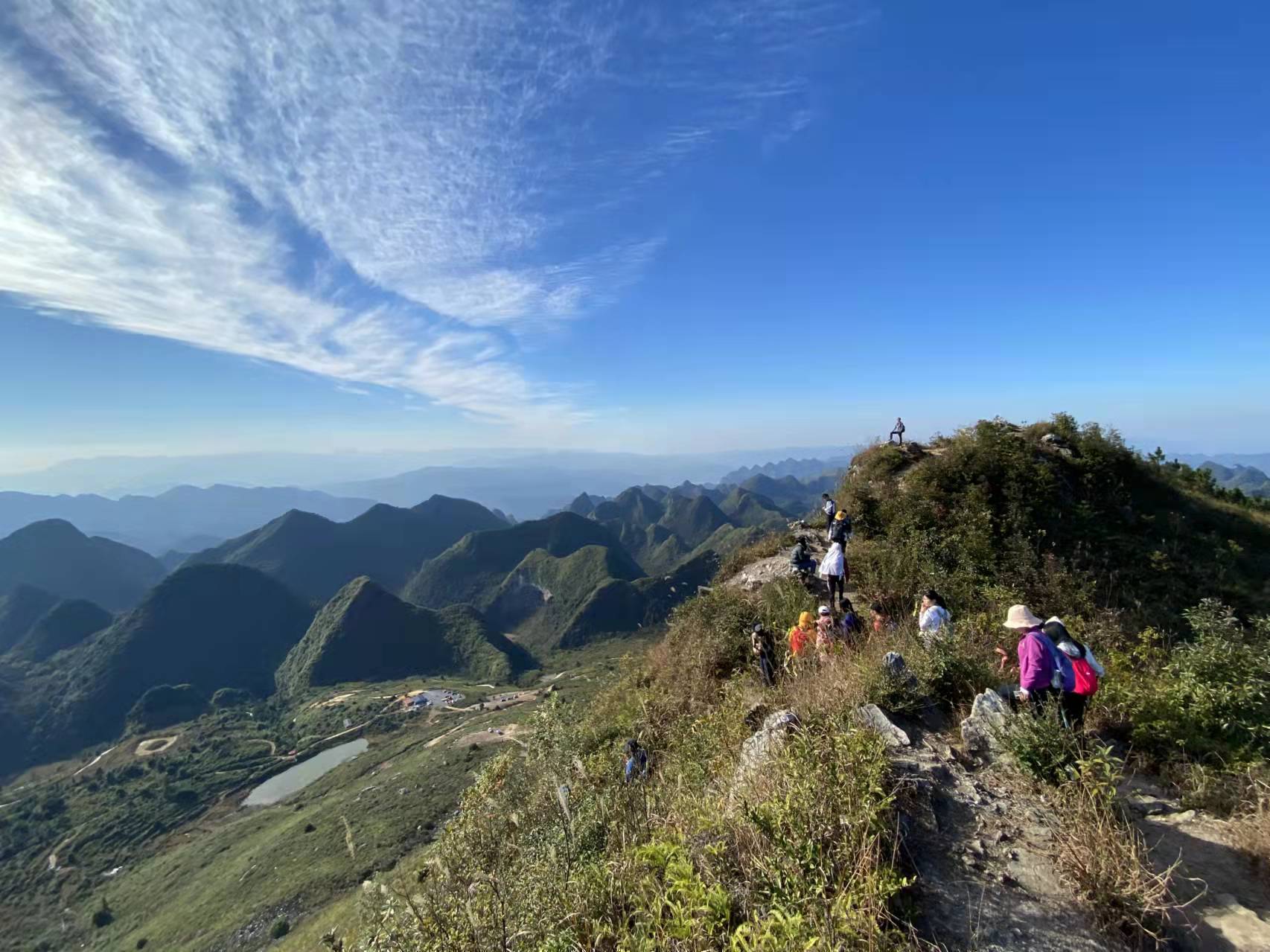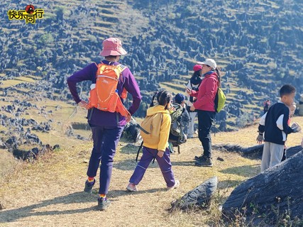10:30继续出发,徒步前往精华路段,一路翻山越岭到达风景尤美的山脊路段,行走在刀锋般的山脊之上。