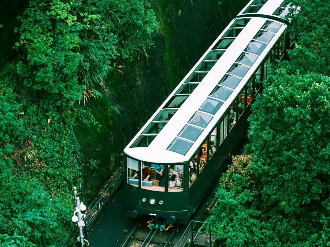 然后趁下午光线好,坐上山顶缆车看落日的维多利亚港。