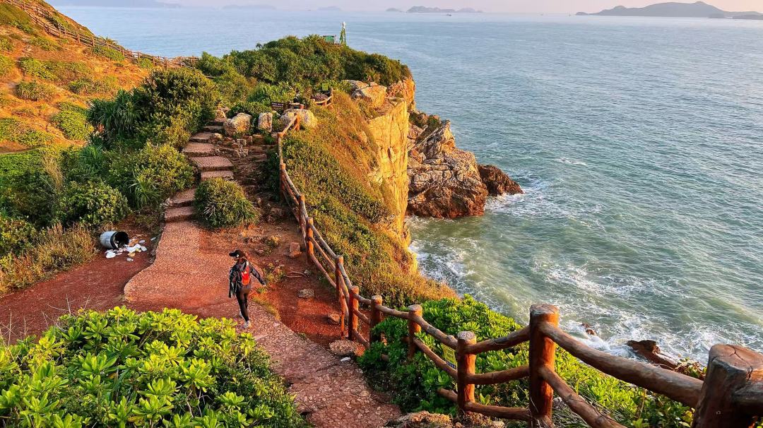 从杨梅坑村出发,沿着鹿嘴大道缓缓前行,这是一条绝美的滨海栈道,左侧是碧蓝澄澈、波光粼粼的大亚湾海水,右侧则是壮观的火山岩地貌,步道平坦,几乎没有爬升,走起来轻松惬意。沿途有多个观景台,在“海蚀平台”“鲸鱼跃海”石雕处,能尽情驻足欣赏这山海交融的独特风光,拍照留念,记录下这令人心醉的美景。