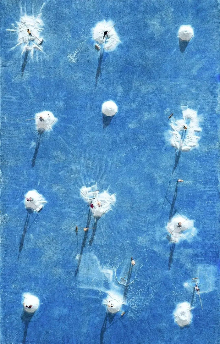 【七彩盐田】国内至大的七彩盐田,就像大自然渲染的调色板,晶莹透亮的晒盐池倒映着无垠的天空!