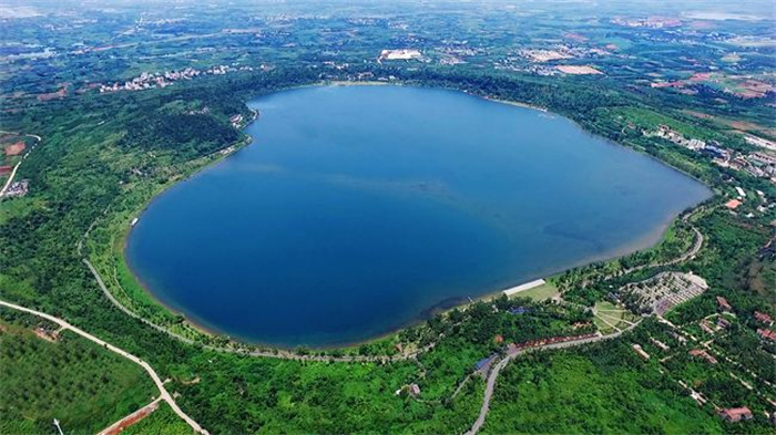 【湖光岩】湖光岩的玛珥湖比德国的玛珥湖大,是世界上发现的最大玛珥湖,且保存得非常自然,完整。湖中没有蚂蝗,没有青蛙和蛇,却有大量的鱼虾,甚至有巨大的神龟龙鱼出没。长年累月不管落叶尘埃如何侵染湖面,5个小时后湖水自有神奇的自我净化功能,把杂物消得无影无踪,湖水清澈,明净如镜,湖光岩其美丽的不解之谜一直是大自然中的谜团,吸引着中外科学家考察探研。湖面积2.3平方公里,是距今14—16万年前由平地火山爆炸后冷却下沉形成的玛珥式火山湖,湖深竟有400多米,据说常有水怪出没哟。