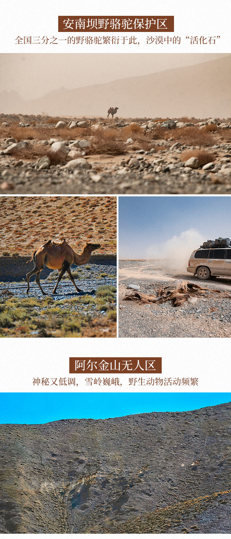 罗布泊无人区+大海道无人区+阿尔金山无人区+库木塔格沙漠+小泉沟大峡谷+博罗转井小镇+彭加木失踪纪念地+安南坝野骆驼保护区