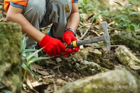 挖矿寻宝必须要使用专业的工具,在老师的教导下,学习使用地质锤,强化工具规范与安全意识,做到寓教于行。