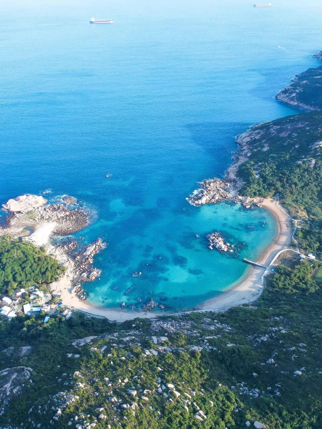全岛以山地居多,主要分为北部的榕树湾和南部的索罟湾两个区域,搭乘轮渡约30分钟抵达,街道两侧布满异国风Cafe,手作小店和海鲜排档,风格迥异的店铺,展现出小岛中西文化共融特色。