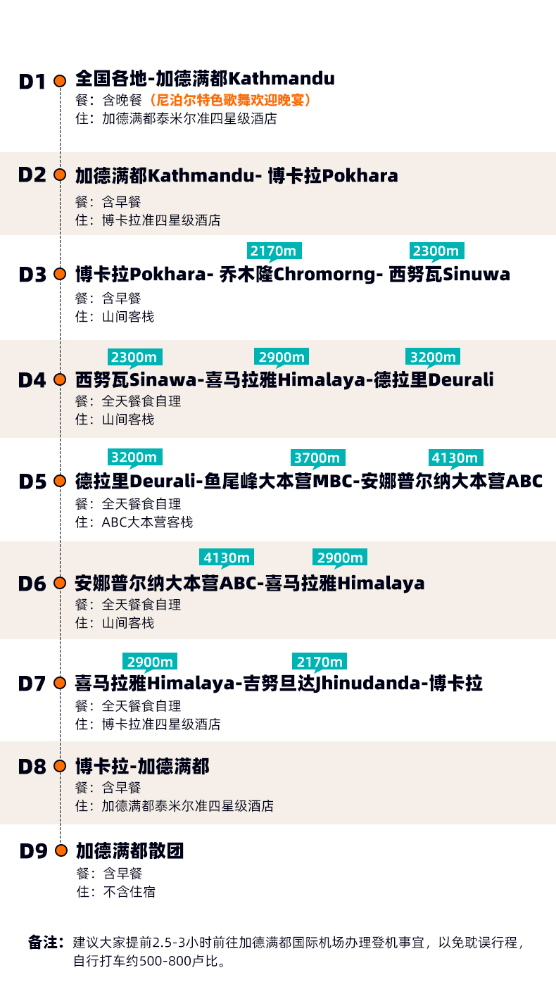 【出团通知】关于出团的相关事项,“大美尼泊尔·ABC”客服会在出团前3-4天在群内通知,通知内容为:集合酒店名称、时间、地址、电话等相关信息,并提醒队员所需装备,请保持手机畅通,集合酒店房费已付,队员自己支付押金。
