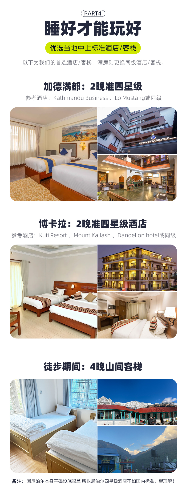 特别备注:因尼泊尔本身基础设施很差 所以尼泊尔四星级酒店不如国内标准,望理解!