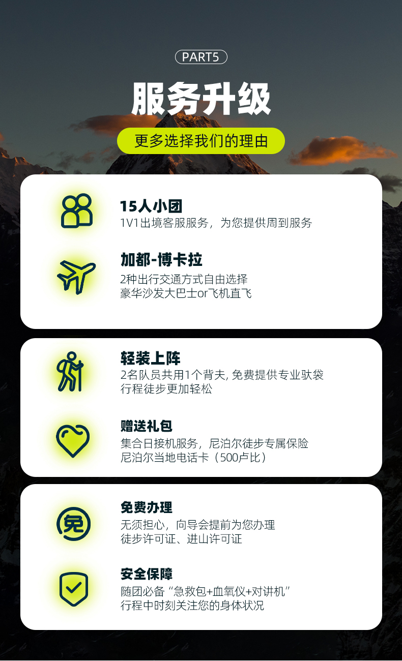 7、我们赠送了尼泊尔徒步相关保险,但只是最低保障。建议根据个人实际情况,购买适合自己的保险。
