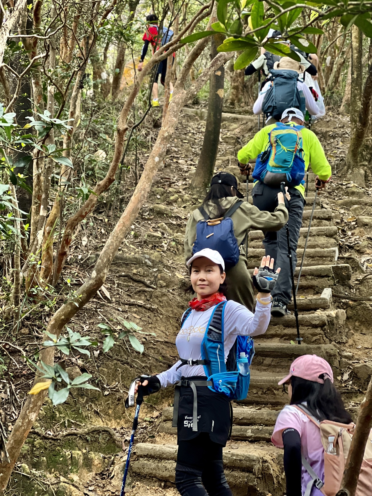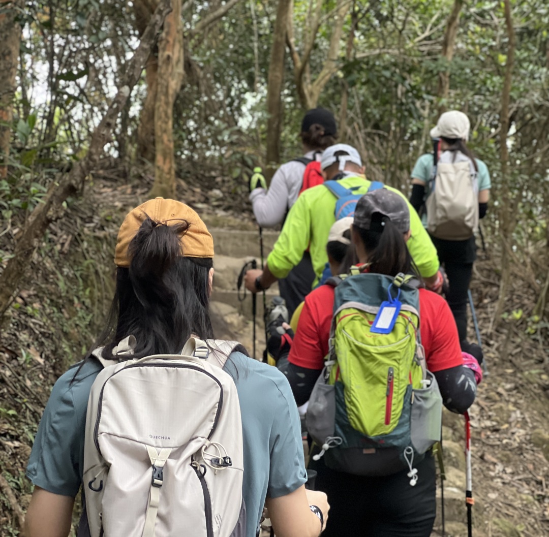 08:30 领队带领热身后开始徒步,今天挑战6、7、8段,也是香港的一条越野跑拉练线路之一的“针草帽”,也是较为辛苦