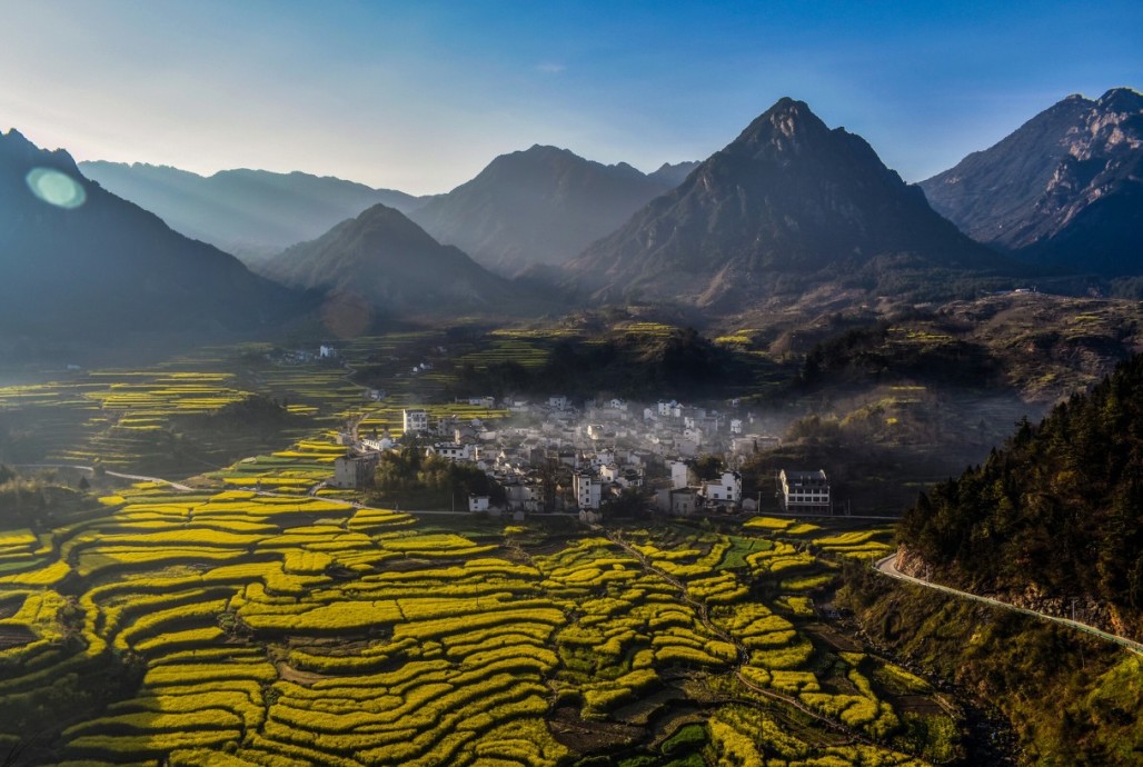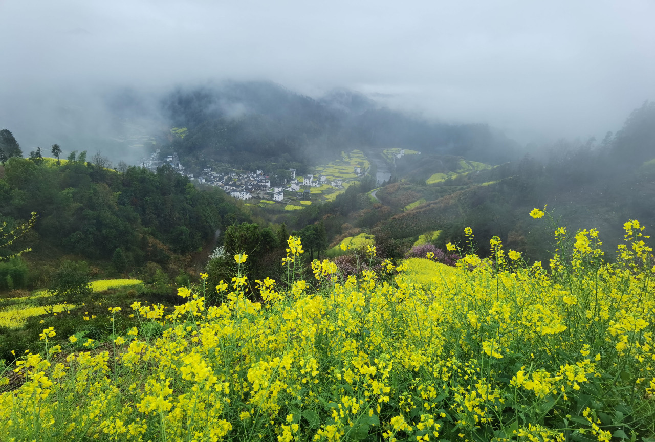 漫山遍野盛开的油菜花,与徽派民居交相辉映,犹如一幅徐徐展开的中国画,充满了乡村韵味,是不可多得的赏花秘境。