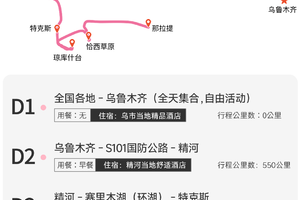 今天全天集合,当天抵达即可;所有团友自行前往乌鲁木齐集合,到达后可在宾馆稍事休息,也可以出去到处逛逛。自由活动期间请注意自身及财产安全。