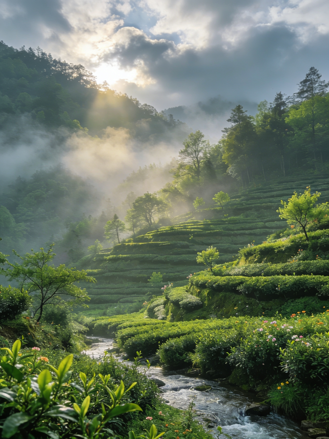 这里虽不是名山大川、没有绝色风景,打动我们的,恰恰是那些曲径通幽的竹林,三五步就可遇见的溪流,还有萦绕在耳边的鸟叫声、美丽的鹰嘴桃园和高山茶山梯田。