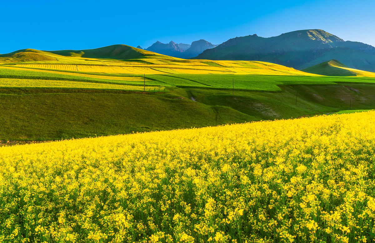 沿途河流蜿蜒流淌,映照着万千风景,阳光透过云层,天空湛蓝透明仿佛能摸到它的边缘。远处山峦高耸,像巨人守护一方平安。我们缓缓行走其间,你会找到内心的宁静和前所未有的安全感,人与自然的界限变得模糊。每一位淳朴的牧民,可爱的牛羊,盛开的野花,都能轻易驱散你所有的焦虑和不安,带来洗礼与重生。