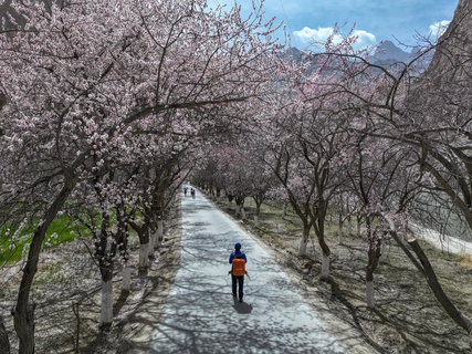 每当杏花绽放时,帕米尔高原上的居民和杏花构成了一幅幅仙境般的画卷,宛如世外桃源,有了杏花,更为帕米尔高原增加一抹绚烂的色彩。