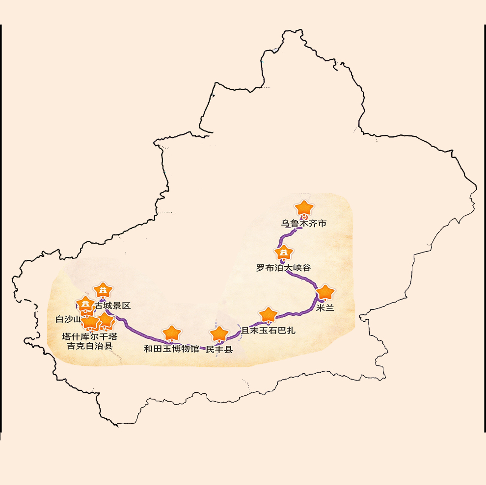 新疆若羌与楼兰古国:千年丝路文明的交响,楼兰古城今属新疆巴音郭楞蒙古自治州若羌县,这里汉代是楼兰古国的中心。如今我们将前往参观若羌楼兰博物馆(全国重点文物保护单位),了解楼兰文明历史,馆藏文物包括楼兰遗址出土的9具成人和儿童干尸。参观完楼兰博物馆,我们前往且末,且末是"玉石之路"的发祥地,早在先秦时期,就已有"昆山之玉"的美谈。古时人们在昆仑山、阿尔金山北麓开采玉石,东运西出,开辟了一条贯通东西的"玉石之路"。《汉书》记载,且末国盛产美玉,"玉出昆冈,且末为上",素有"昆仑美玉、且末为上"的美誉。午餐在且末品尝新疆美食。之后我们逛逛玉石之都的巴扎,看看能不能淘一些价廉物美的宝贝。之后我们前往民丰入住酒店。