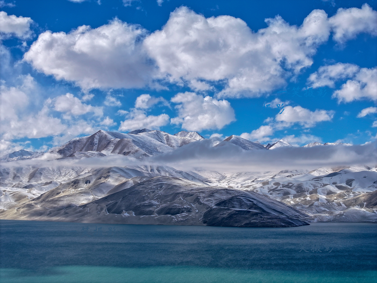 这里湖水四季都是清澈无比,蓝天、白云、与山体湖水连成一片,天与地也没有界限,眼前只有自然风光的美好。这里草肥美、水鸟聚集,青色的山体被白沙所覆盖,半遮半掩,起伏延绵,与山顶的雪山和山下的湖泊河流,形成了气势恢宏的一大奇观,令人惊为仙境。