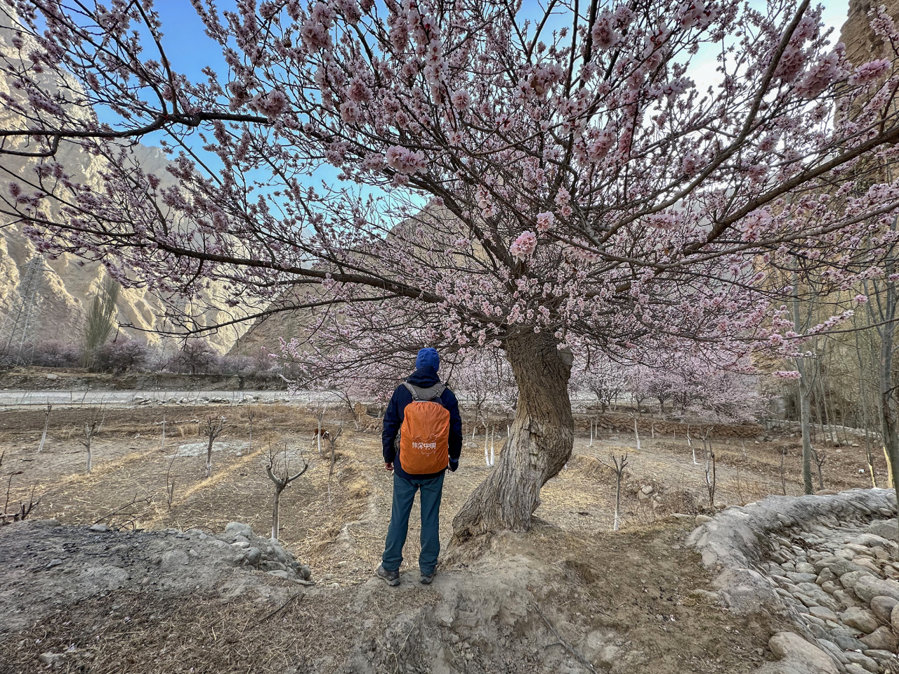 早餐后我们深度游览帕米尔高原深处的杏花村,我们徒步穿越塔尔乡的百年野杏林,村里的杏花树枝干虬曲如龙,粉白花瓣随风飘落,形成天然“花雨长廊”。午餐后自驾车沿叶尔羌河谷行走,碧绿河水切割赤色丹霞,崖壁如被巨斧劈开。 途中偶遇柯尔克孜牧羊人,成群的牦牛与绵羊在花树下觅食,宛如油画场景。 一路上一幅幅画犹如油画般的出现在我们眼前,这一天我们将在杏花的花海里度过,感受帕米尔高原上昆仑山峡谷里的春天。