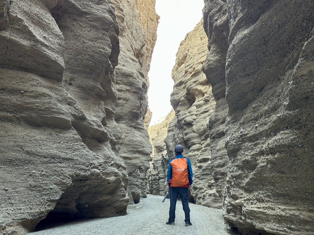 早餐后约8:30出发,沿着新开通的乌尉高速前往南疆,乌尉高速作为新疆首条穿越天山的高速公路,从乌鲁木齐至库尔勒市驾车时长由7小时缩短至3.5小时,通过天山胜利隧道到达南疆。在库尔勒午餐后,我们前往尉犁的罗布泊大裂谷。 罗布泊大峡谷是地下峡谷,整个峡谷的的横截面呈“A”字型,上窄下阔。谷长约4.9公里,宽2-40米。深10-30米,谷口海拔1017米,谷尾897米,上下落差120米。 大裂谷两侧分布10余条侧谷,较大的有7条,裂谷幽深莫测,仿佛就是地下宫殿。站在大裂谷底,仰视谷口,又是另一番景致:幽深莫测,蜿蜒起伏;谷壁的形状千姿百态,陡峭险峻,嶙峋奇异。