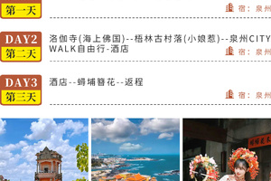 根据大交通时间,乘动车前往泉州,泉州是国务院首批历史文化名城、东亚文化之都、古代“海上丝绸之路”起点城市,文化积淀深厚,素有“海滨邹鲁” 、“世界宗教博物馆” 、“光明之城”的美誉。泉州属亚热带海洋性季风气候,终年温暖湿润,四季如春,古诗称泉州“四季有花 常见雨,一冬无雪却闻雷” ,故泉州有“温陵”之雅称。