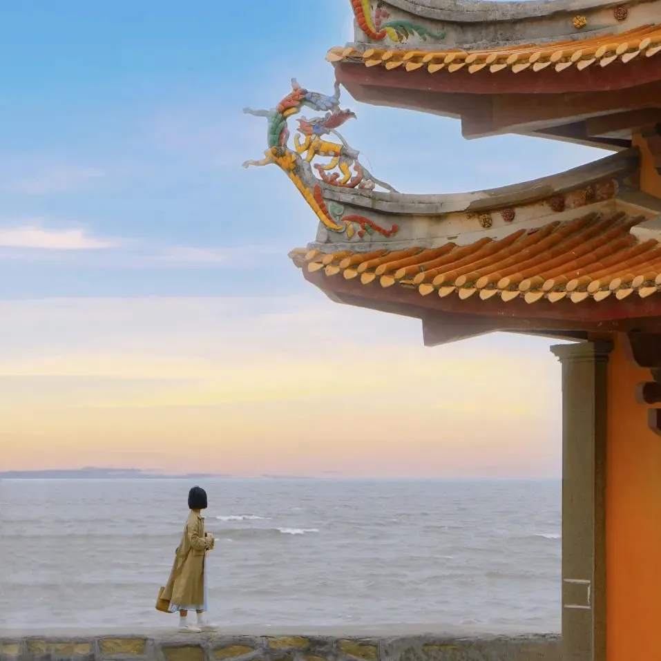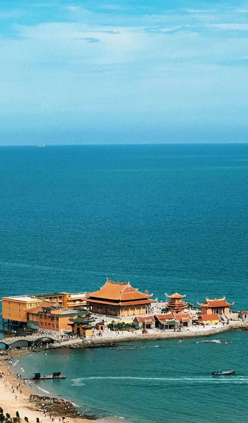 10:30 洛伽寺,来一组李现同款机位大片哦,“海中有庙,庙中有海”,打卡泉州十八景之一黄金海岸沙滩。
