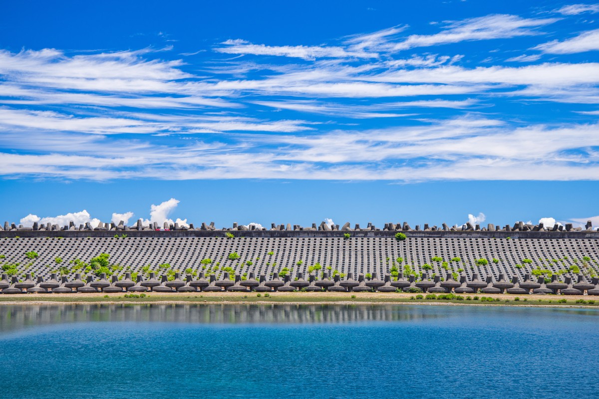走在宽阔的堤坝上