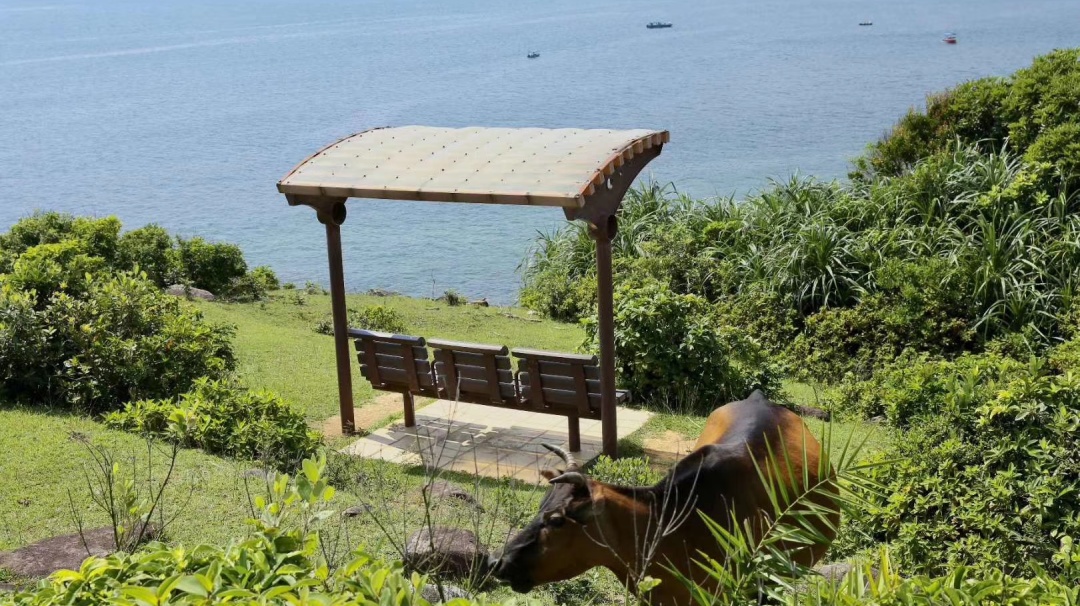 牛牛、野猪、蓝天、大海、草坪